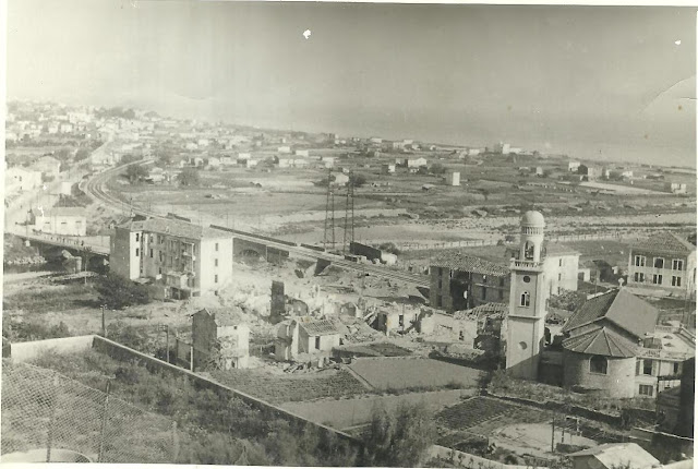 La zona Nervia di Ventimiglia, Camporosso Mare e Vallecrosia, fotografate dalla collina di Collasgarba qualche giorno dopo il bombardamento del 10 dicembre 1943 - Fonte: Silvana Maccario